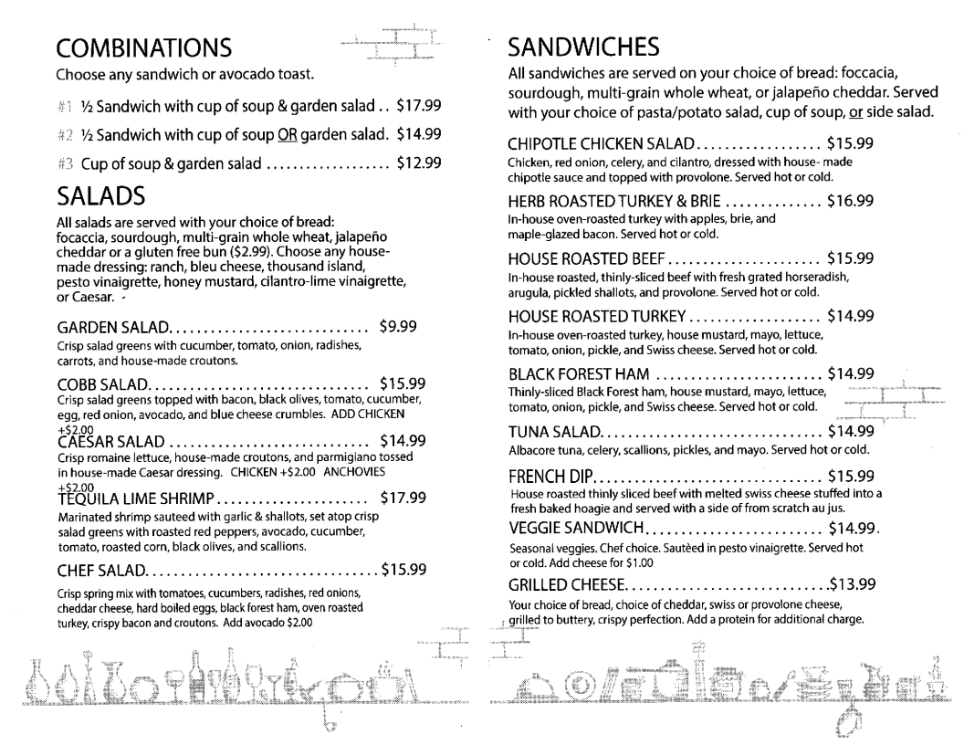 A cup of soup AND salad, served with your choice dressing and bread: Focaccia, Gluten Free, Jalapeño Cheddar, Sourdough, or Whole Wheat.