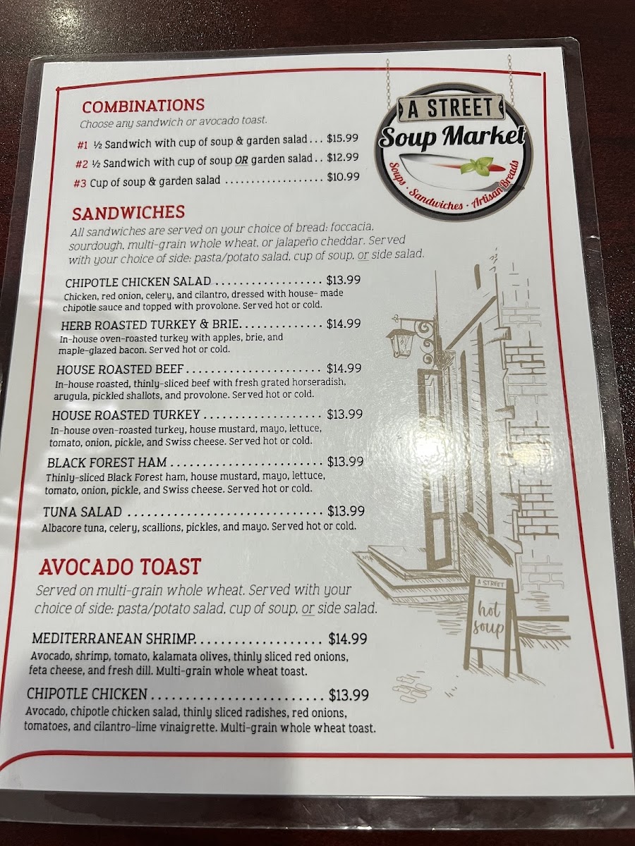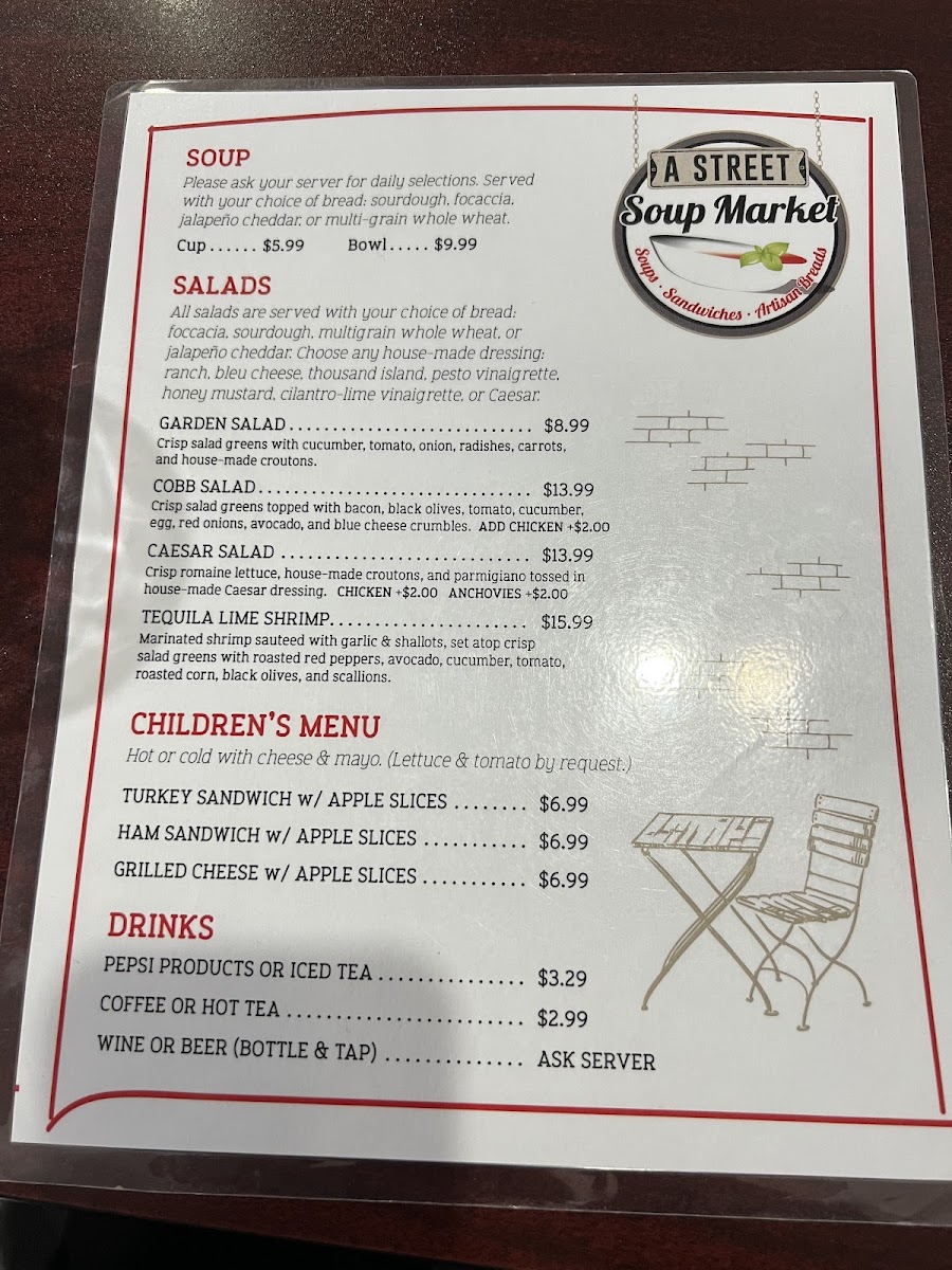 If you're craving a hearty bowl of soup, you're in for a treat at A Street Soup Market Menu. Located at 445 A St in Idaho Falls, this cozy spot offers a warm, inviting atmosphere that’s perfect for enjoying comfort food. From classic recipes to innovative creations, the menu features a variety of soups that cater to all tastes. Whether you’re in the mood for something creamy, spicy, or light, you'll find the perfect option to satisfy your cravings. Each dish is made with fresh ingredients, ensuring rich flavors in every spoonful. With such a wide selection, it's easy to find a favorite or try something new with every visit.